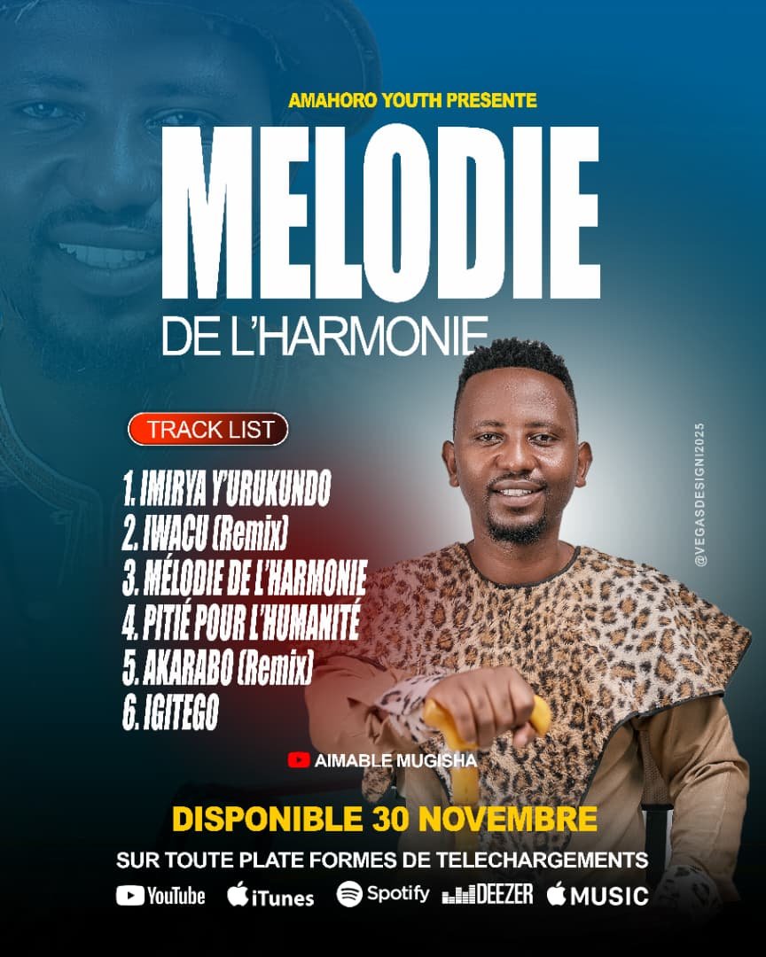 La scène musicale de la région des Grands Lacs s’apprête à vibrer au rythme d’une œuvre artistique soigneusement construite : “Mélodie de l’Harmonie”, le tout nouvel album du chanteur Aimable Mugisha, sera disponible officiellement sur toutes les plateformes à partir du 30 novembre 2025.