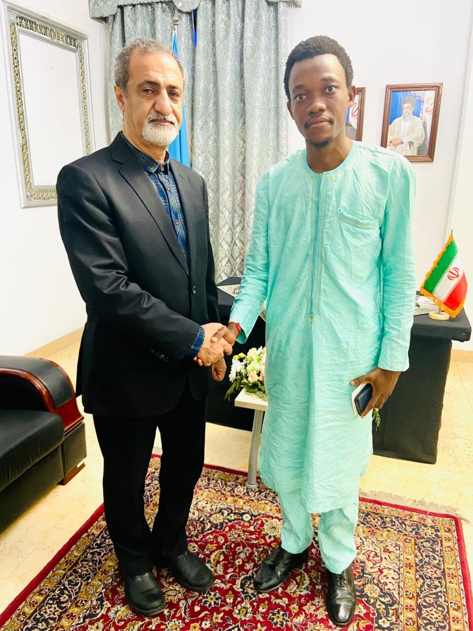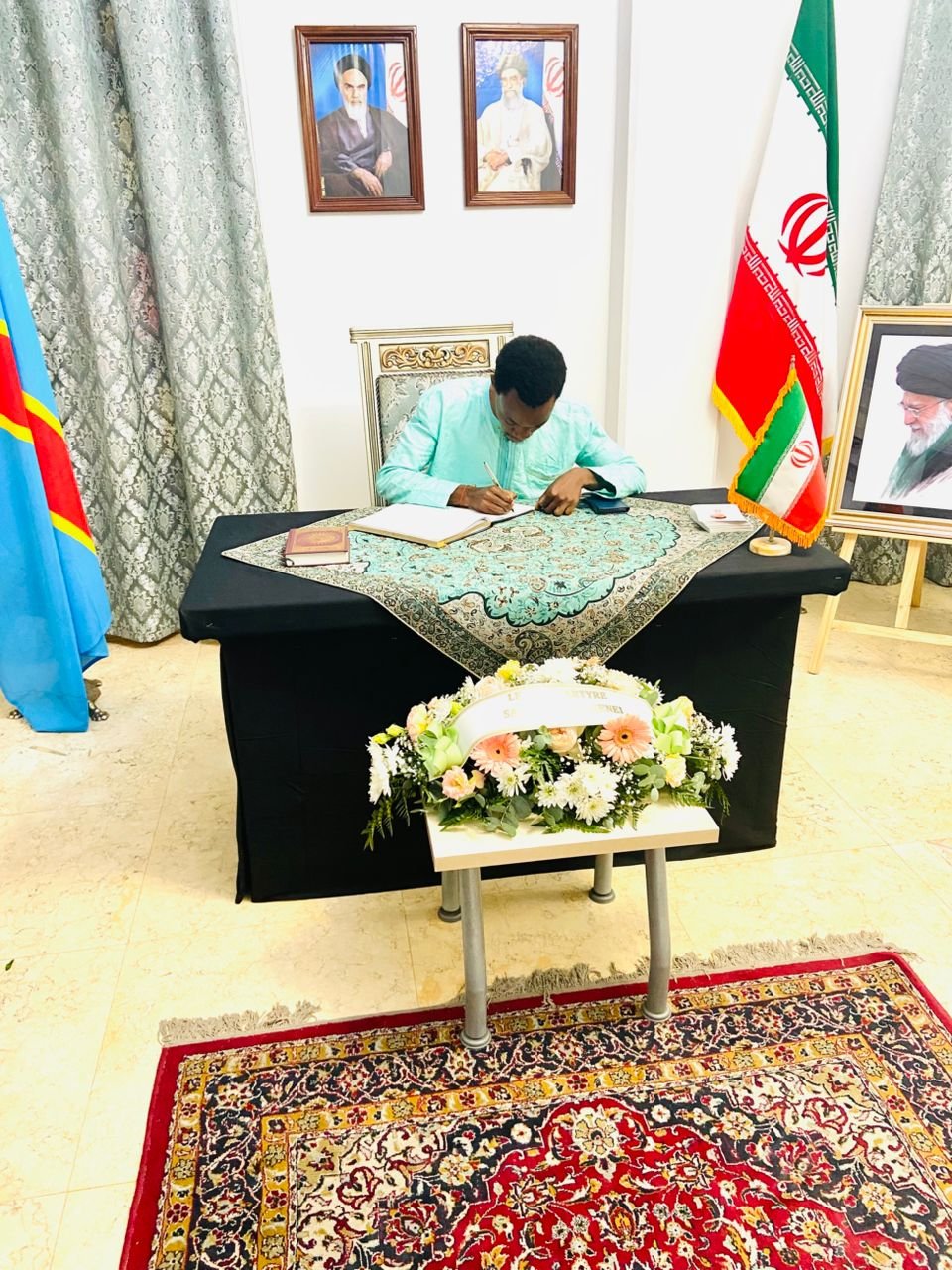 Après des échanges fraternels avec les diplomates de l’Ambassade de la République Islamique d’Iran à Kinshasa, Grâce Ngolo, président de l’Association des Révolutionnaires Patriotes, a signé le registre de condoléances ouvert à l’ambassade à la suite du martyre de Son Éminence Ali Khamenei.