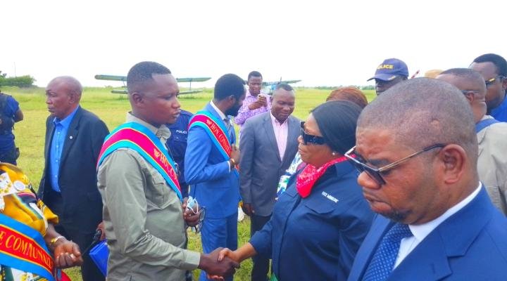 À son atterrissage à l’aéroport national de Lungandu, elle a été accueillie par plusieurs autorités locales, dont l’Honorable Pasteur Laurent Luboya Babuambe, conseiller communal et rapporteur du Conseil de Ndesha, ainsi que président interfédéral du parti politique Congo Positif au Kasaï Central.