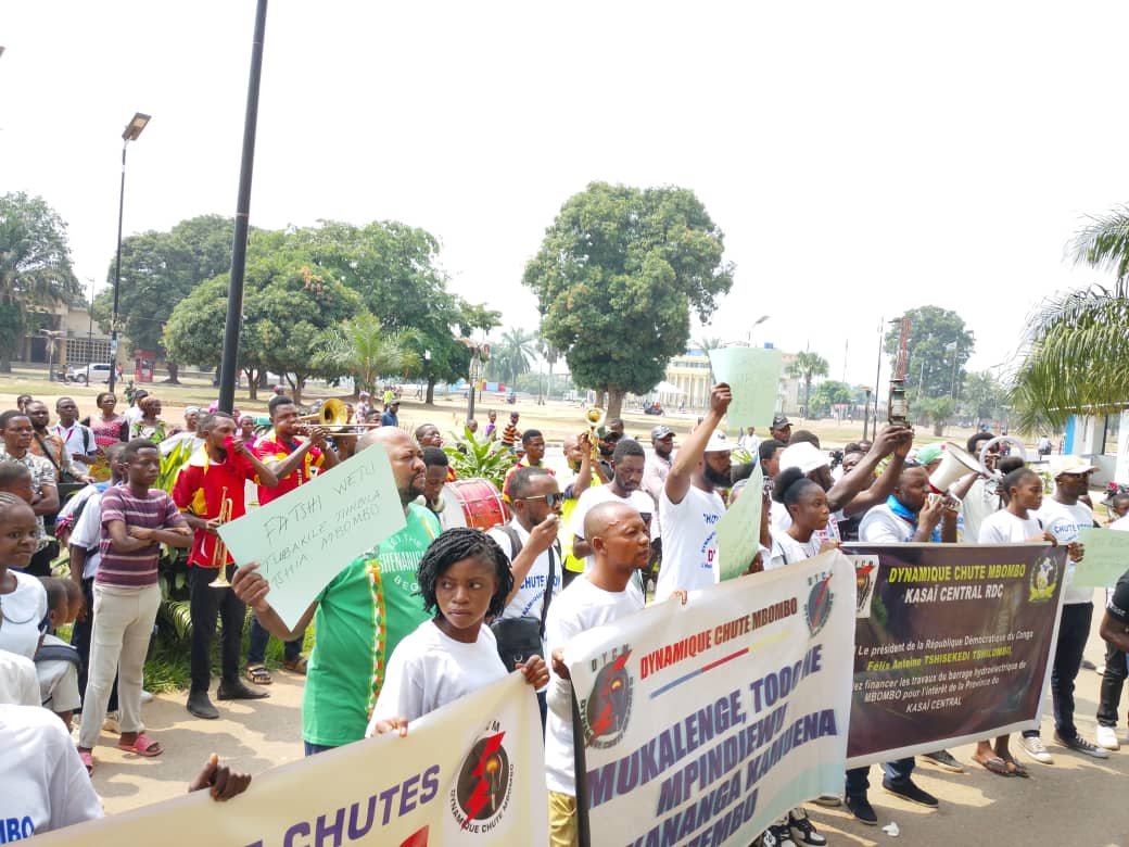 Les manifestants ont exigé le financement urgent du projet Chute Mbombo, lancé symboliquement le 15 février 2025, mais qui reste sans suite.
