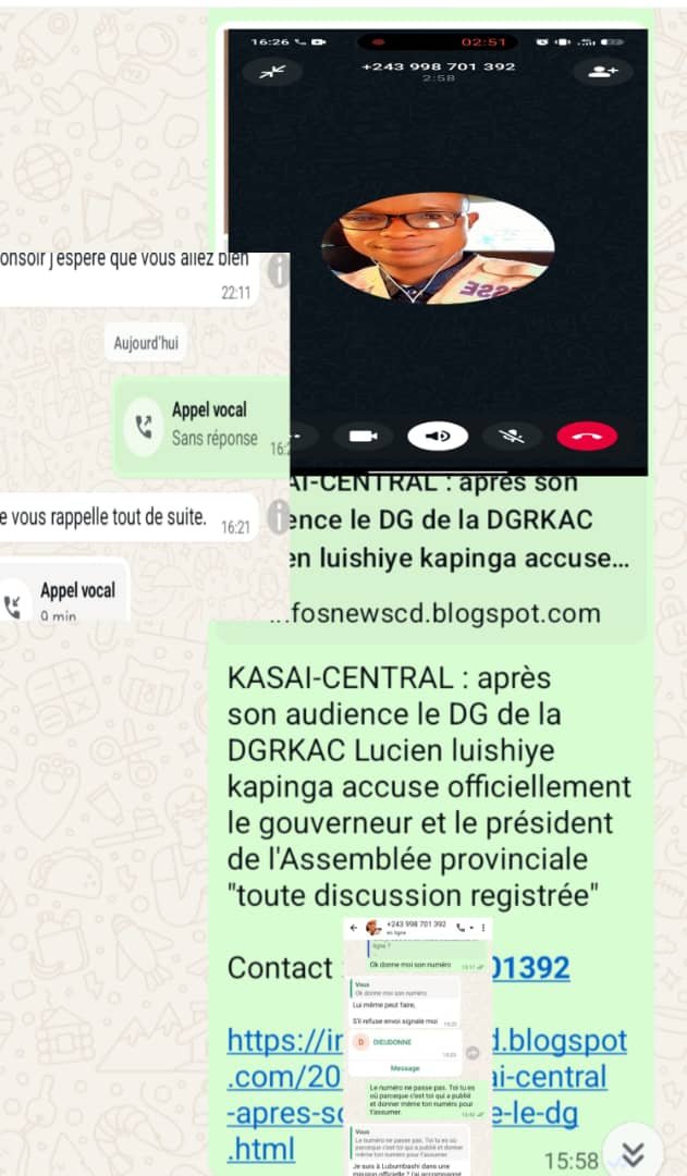 Une information largement relayée sur certaines plateformes numériques et réseaux sociaux d’un site web non reconnu infosnews, faisant état de prétendues déclarations du Directeur Général de la DGRKAC, Monsieur Lucien Luishiye Kapinga, à l’issue d’une supposée audience, a été formellement démentie par des sources proches du dossier.