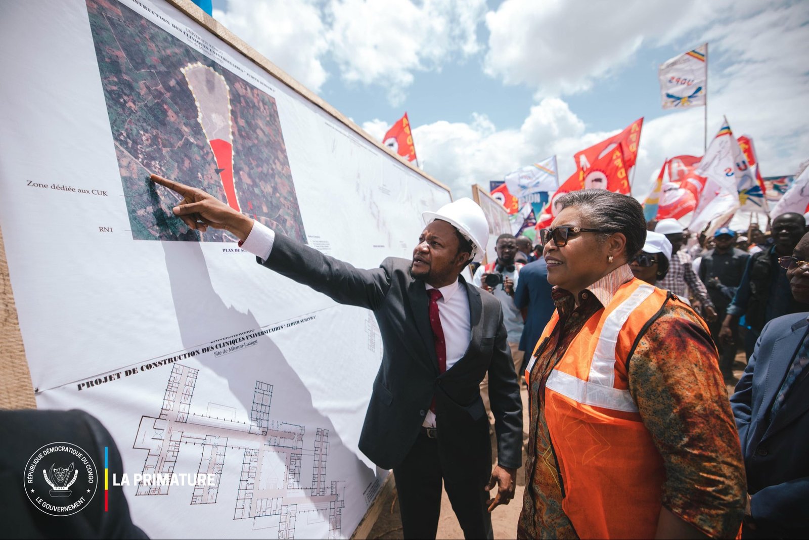 À son arrivée, la Cheffe du Gouvernement a salué la mobilisation massive de la population locale, des étudiants, des forces vives ainsi que des autorités politico-administratives de la région. Cette affluence témoigne des attentes élevées suscitées par ce projet structurant, porteur d’espoir pour l’amélioration de l’offre de soins dans le Kongo Central et au-delà.