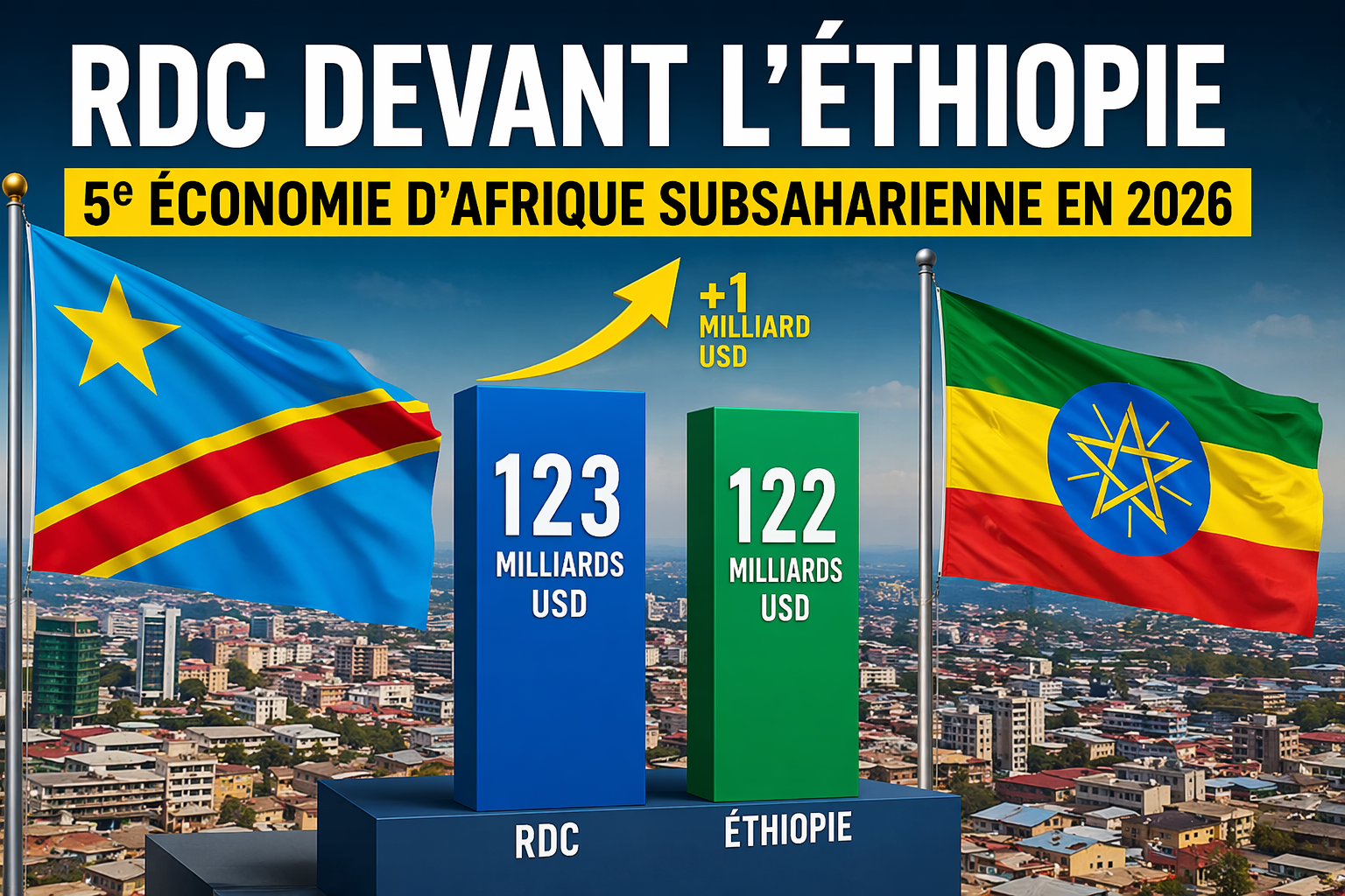Selon le FMI, la RDC pourrait dépasser l’Éthiopie en 2026 avec un PIB estimé à 123 milliards USD, devenant la 5ᵉ économie d’Afrique subsaharienne.
