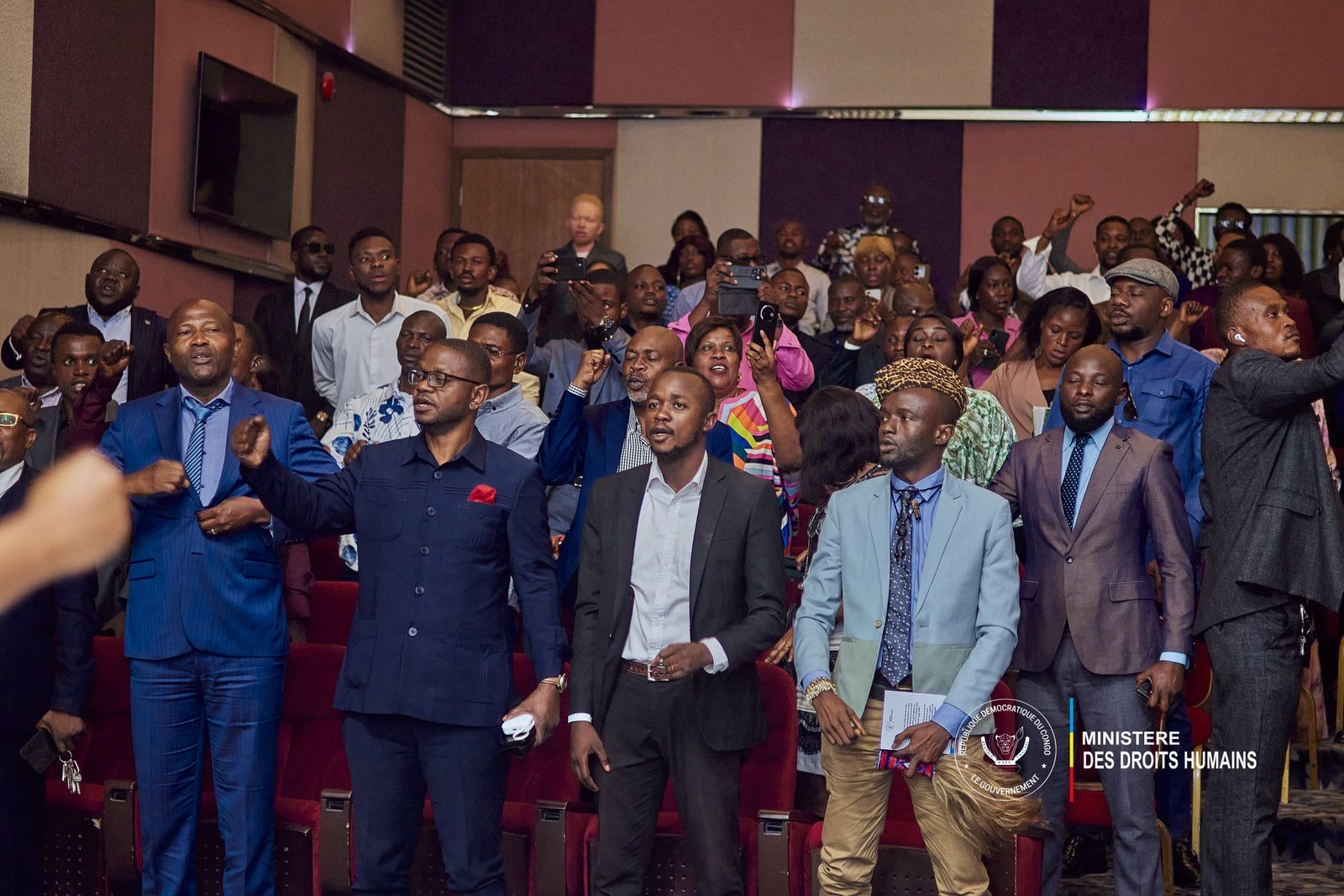 Dans l’auditorium du Fleuve Congo Hôtel, archicomble, le Ministre Samuel MBEMBA KABUYA a invité les activistes et défenseurs des droits de l’homme à vulgariser les deux résolutions reconnaissant les génocides commis en RDC, qui, sans nul doute, sont l’œuvre du génie du Président de la République, Félix Tshisekedi, appuyé par la Distinguée Première Dame et la Première Ministre.