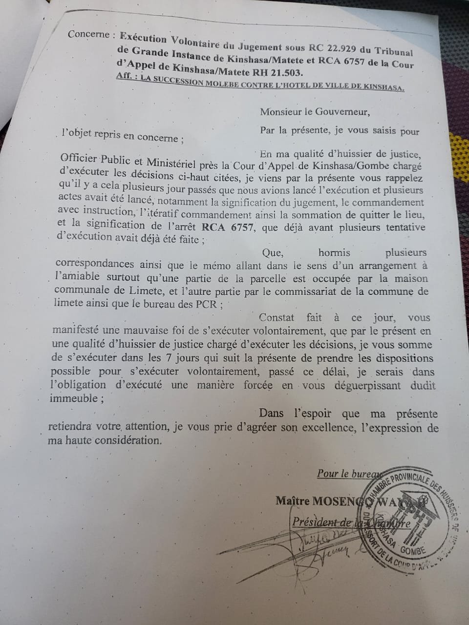 Après des années de procès, la famille Molebe a finalement remporté son droit sur la propriété, qui avait été occupée illégalement pendant de longues années par l’administration communale. Cette restitution constitue une victoire de la justice et un signal fort en faveur du respect de la propriété privée.