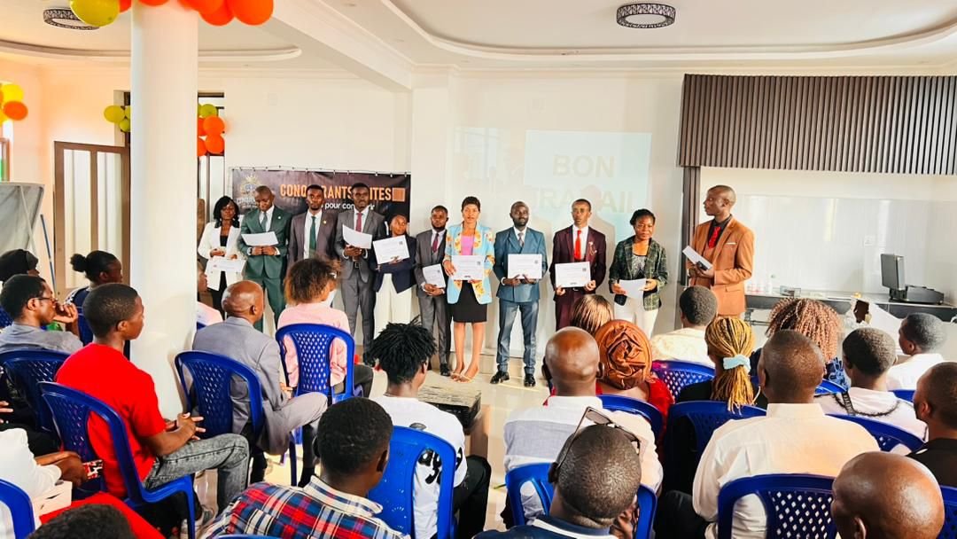 L’un des temps forts de la journée a été la remise officielle des brevets et l’installation de l’équipe provinciale qui supervisera les activités de OQATA à Goma. Le Emery BYAMUNGU (CEO) a présenté cette équipe à l’assemblée, puis le Trésor MASHAURI, représentant de l’équipe, a remis lui-même les brevets à l’équipe de sensibilisation et d’information sur OQATA.