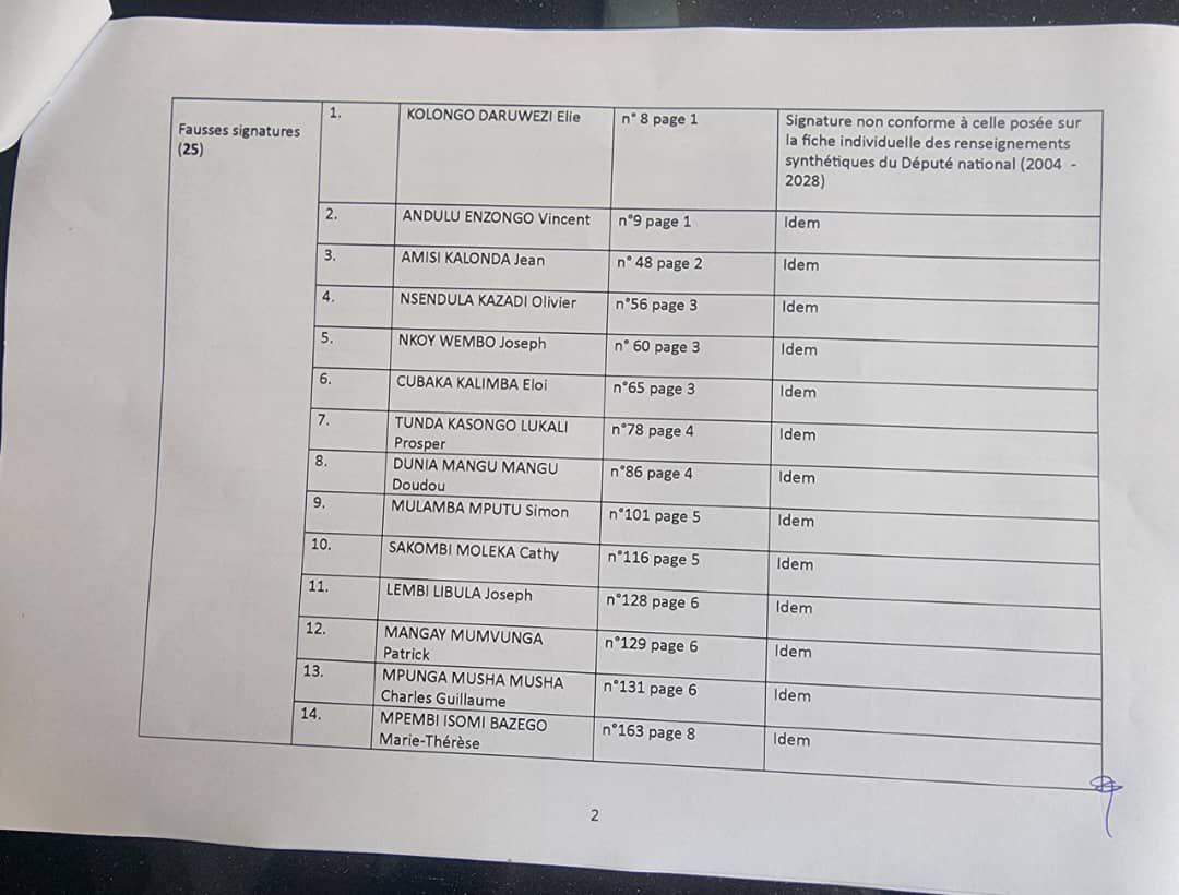 – Titan KALONJI Antoine, mentionné dans la liste sans y apposer de signature ;