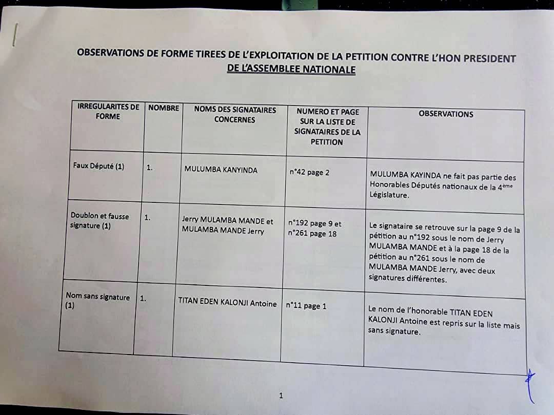 – La présence de MULUMBA KANYINDA, signataire non reconnu comme député national ;