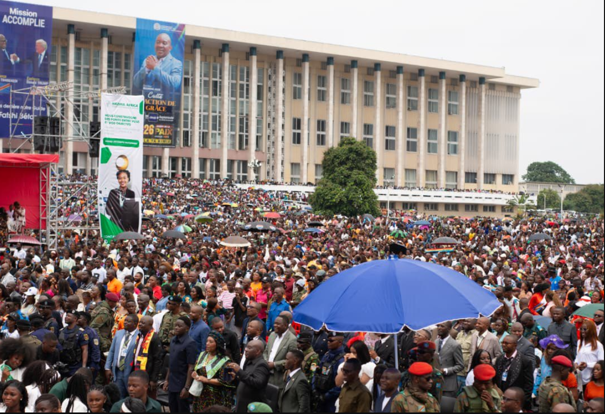 L’Église Pentecôtiste Lumière du Monde (EPLM) a organisé, le 4 janvier 2026, un culte solennel d’action de grâce à l’Esplanade du Palais du Peuple, à Kinshasa, en réaction à la signature de l’accord stratégique entre la République démocratique du Congo et les États-Unis.