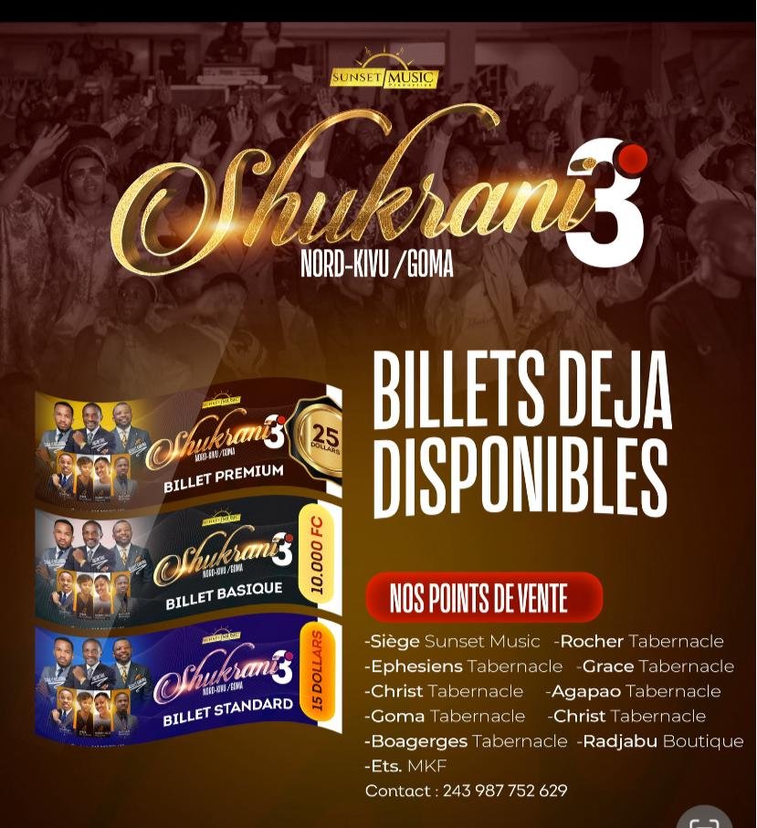 À travers cette édition, les organisateurs encouragent les habitants du Nord-Kivu à venir nombreux célébrer ensemble la fidélité de Dieu. Shukrani 3 s’annonce comme un moment d’unité, de joie, de guérison et de renouveau spirituel pour la population de Goma.